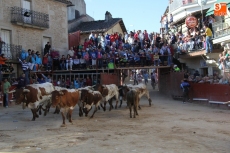 Al poco llegaban dos novillos en solitario, un 'tío' negro y un 'mozo' jabonero que contribuían a animar la fiesta. El encierro iba para largo, hasta que finalmente entraron los siete mansos restantes y otro novillo más de los cuatro que iniciaron el recorrido en El Rocoso, en este caso otro 'tío' negro que no se separó de los mansos y que fue con el jabonero el primero en entrar a los corrales.