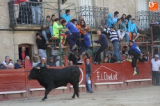 Como significábamos en la primera información, añadir que el novillo que quedó en la calle fue transportado a los toriles de la plaza en una máquina excavadora bajo la esperanza de que en las horas distantes a la celebración de la novillada se recuperase de la 'paliza' que tenía, según señaló el alcalde de la localidad, Santiago Hernández.