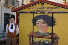 En la mañana del miércoles también se puso en marcha otro de los espectáculos complementarios de la Feria 2014, La cabeza parlante, una original barraca 'propiedad' de Teatro Diadres que estará instalada hasta el viernes en la Plazuela de San Salvador. Dentro de la misma, los espectadores tienen la oportunidad de contemplar a la hermana de la Condesa de Cognac, que no tiene cuerpo.