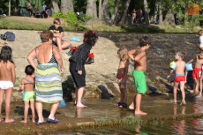 Candelita acaba su primer día en la ciudad mojándose los pies en el río