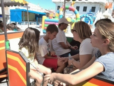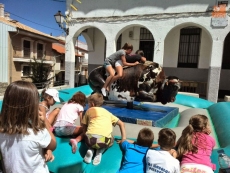 Ningún niño o niña quiso perderse montar en los castillos hinchables, en el toro mecánico, en la cama elástica o jugar al fútbol. Los mayores también se apuntaron a recorrer su pueblo a bordo de un tren turístico.