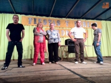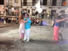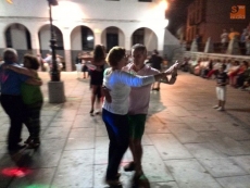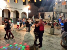 Por la noche, durante la verbena, vecinos de todas las edades participaron en el Concurso de Pasodobles. Iluminados por luces de colores, las parejas de niños, adultos y mayores demostraron su arte bailando pasodobles en la Plaza Mayor.
