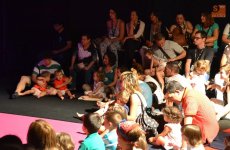 La función que dobló fue el bebécuentos de la Sala A del Espacio en Rosa (la Escuela Hogar Los Sitios), que en la mañana del miércoles fue ofrecido por Teatro Da Semente. Esta compañía estrenó en castellano Chíos (Trinos), un montaje con la participación en escena de Chus Álvarez y Raquel Queizás, que intentaron crear con canciones, bailes, poemas visuales y juegos un clima para que los bebés ?acompañados de sus padres- disfrutaran del ambiente teatral.