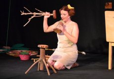 A través del teatro de papel, el director de la compañía, Marcelo Lafontana fue representando una historia de viajes, con el personaje de Fernão Mendes Pinto como protagonista. A la hora de la representación, lo que iba realizando con sus manos Marcelo Lafontana se fue reflejando en tiempo real en una pantalla gigante para que lo pudiera seguir el público asistente.