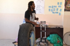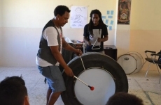 Si en la noche del miércoles los chavales del Divierteatro participantes en el pasacalles Crassh playing with Ciudad Rodrigo usaron cubos de pintura como tambores, en la jornada del sábado se usarán como tambores viejos neumáticos de distintos tipos de vehículos, tal y como explicó Peu Meurray en la mañana del jueves a los chavales participantes en el taller de preparación del espectáculo.