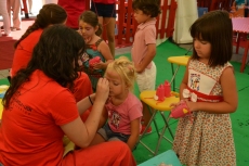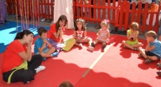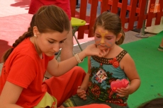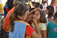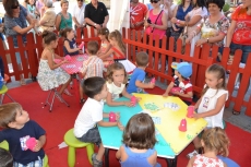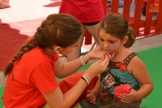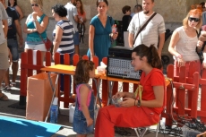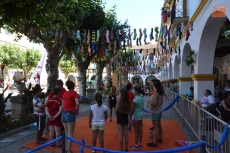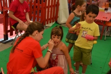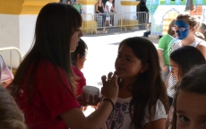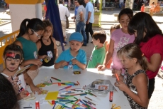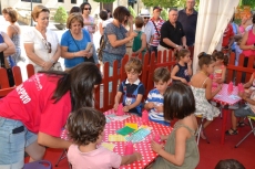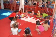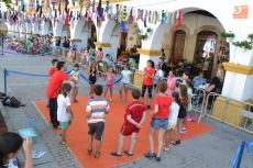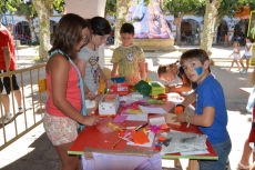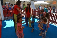 Concluida la ruta por la Plazuela del Buen Alcalde, las autoridades se desplazaron hasta la vecina Plazuela del Conde, para recorrer también el Palabreando y descubrir lo bien que se lo estaban pasando los chavales de 3 a 6 años con los cuentos de Pilar Borrego, los talleres de maquillaje o con los juegos.