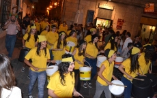 Por una parte, se utilizaron cubos de pintura a modo de tambores para realizar un pasacalles desde la Plazuela de Herrasti hasta el Registro, pasando por Cardenal Pacheco, Plaza Mayor y calle Madrid. En medio de la Plaza Mayor se realizó una pequeña parada, y antes de cruzar la bóveda del Registro, otros jóvenes lanzaron paja a la comitiva de tambores.