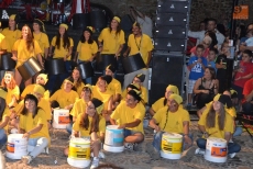 Previamente, durante la jornada del martes, y en la tarde del miércoles, We Tum Tum había trabajado con los jóvenes en la preparación del espectáculo, en la que por supuesto se utilizaron unos instrumentos de lo más curioso.