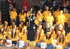 Una vez en el Registro, estos jóvenes fueron recibidos por el otro grupo, que tenían otro artilugio extraño con el cual hacer ruido. Tras unos momentos de 'tensión', todos los jóvenes se unieron para hacer aún más ruido. A continuación, los chavales del Divierteatro se colocaron delante del escenario situado en el Registro.