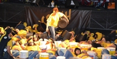 En un momento dado, los jóvenes despertaron de su letargo para disfrutar del concierto repartidos por el Registro. En el tramo final, los jóvenes volvieron a colocarse delante del escenario, para volver a hacer sonar sus tambores en ciertos momentos. Con una duración prevista de una hora, el espectáculo completo tuvo una duración de hora y media, siendo seguido por cientos y cientos de espectadores en el Registro.