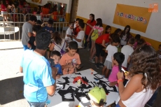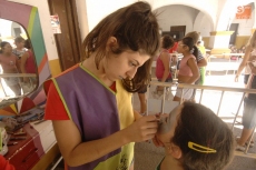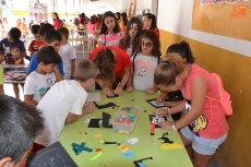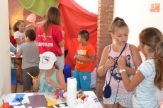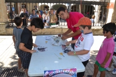 La mayoría de los niños que sale de la Plazuela del Buen Alcalde lo hace con algún tipo de títere, hechos con periódicos, cajas de cartón o vasos de yogurt, lo que permite que estén creando su propia 'colección' de títeres en casa. Asimismo, en la zona de talleres hay otro de sombras chinescas donde los niños pueden conocer esta técnica. Por supuesto, además de los títeres, muchos de los chavales también se van de la Plazuela con la cara pintada como recuerdo.
