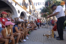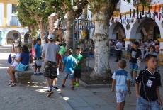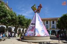 En el otro lateral de la Plazuela del Buen Alcalde se puede encontrar la zona de juegos, y el espacio donde la compañía Alauda Teatro está dando a conocer la historia y evolución de los títeres. Según se va explicando cada uno de ellos, hay un pequeño ejemplo práctico de cómo se usan.