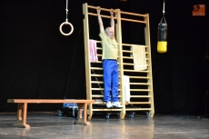 La jornada de jueves de la Feria de Teatro 2014 se cerró como es habitual en el Patio de Los Sitios, transformado en esta ocasión en un viejo gimnasio gracias a la obra Cualquiera que nos viera?, un estreno absoluto de la compañía Zanguango Teatro.