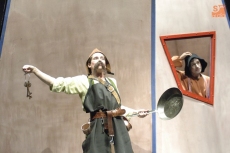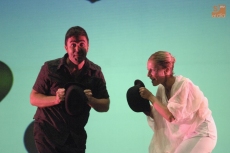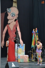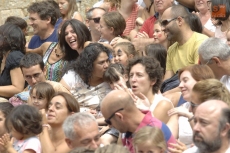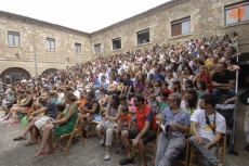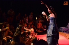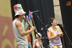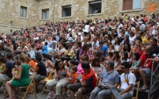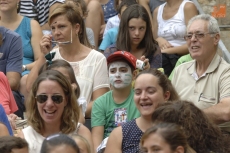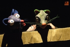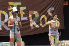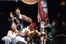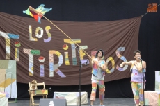 La mañana del sábado concluyó en un lugar 'novedoso', el Patio de la Escuela Hogar Los Sitios. Famoso dentro de la Feria de Teatro por acoger el ciclo nocturno con el que se cierra cada día de Feria, el Patio de Los Sitios acogió a última hora de la mañana una actuación de Los titiriteros de Binéfar titulada Canciones de titiriteros.