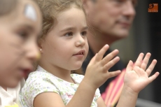 Una de ellas fue en la 'playa' instalada en la Sala A del Espacio en Rosa (la Escuela Hogar Los Sitios), donde La Monda Lironda Teatre ofreció La Mar de Vida, un montaje dirigido a bebés repleto de elementos marinos, como las caracolas. La protagonista del espectáculo fue Almarina, un personaje lleno de curiosidad. Como es habitual, del bebécuentos se ofrecieron dos pases.