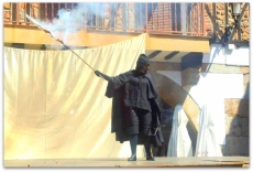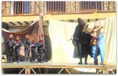 Sotoserrano completó el ciclo teatral tradicional, junto a Sequeros y La Alberca, y en el día de ayer vivió con pasión y alegría la interpretación de su propia Loa. A mediodía, bajo el sol de septiembre y con la Plaza Mayor en la que no cabía un alfiler, los actores (vecinos del municipio) se auparon al Tablao y deleitaron al público con una obra que muchos, sino la mayoría, se saben de memoria. La lucha del bien contra el mal, arcano y simple concepto de estos autos, volvió a poner a flor de piel la tradición y el amor por la historia propia, con el Diablo intentando evitar que se celebren las Fiestas en honor a San Ramón Nonato y el Gracioso, emigrante que viene a disfrutar de los festejos.