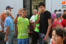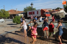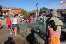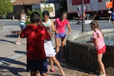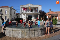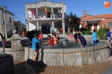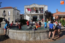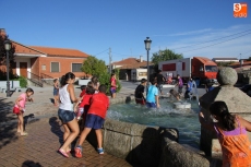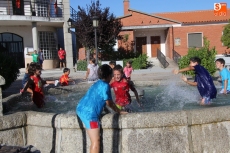 Niños y adolescentes protagonizaron este jueves un año más el tradicional chapuzón en la fuente de la plaza del pueblo, acto que marca el inicio de las fiestas de las Madrinas y que demuestra la animación con la que discurrirán estas celebraciones hasta el próximo lunes.