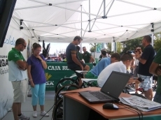537 kilómetros de solidaridad en la primera jornada. Eso es lo que han recorrido los visitantes de Salamaq que se han subido a la Bici Solidaria, iniciativa capitaneada por el equipo Caja Rural Seguros RGA. El cuentakilómetros se puso en marcha este jueves, con la apertura de la feria, y solo en la primera jornada se hicieron 537 kilómetros, los cuales se traducen en kilos de alimentos, destinados al Banco de Alimentos. El récord de la jornada quedó establecido en los 12 kilómetros (12 kilos) por persona. Un récord que seguro que más de uno podrá pulverizar.