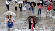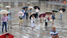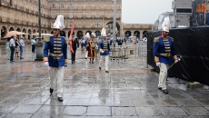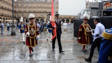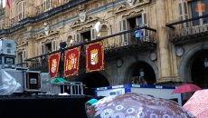La tremenda tromba de agua que ha caído sobre Salamanca a la hora que estaba previsto el inicio del pregón no ha empañado un acto que sí ha comenzado con casi media hora de retraso. Un buen número de salmantinos se agolpaba bajo los soportales para escuchar las palabras del comandante Juan José Aliste, víctima de ETA y actualmente delegado provincial de la Asociación de Víctimas del Terrorismo. Y, en este día tan especial, pregonero de las Fiestas de La Virgen de la Vega.