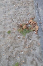 Como se puede ver en las imágenes, en el parque de juegos del Barrio destaca un rincón donde ya se acumulan numerosas hojas, mientras que en el parque de arena hay varios montones de hojas entremezcladas con hierbas.