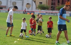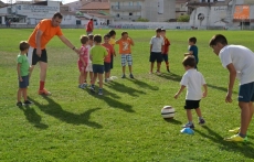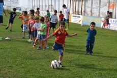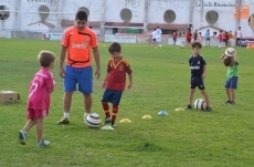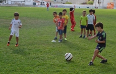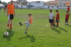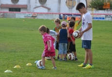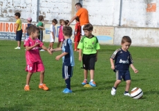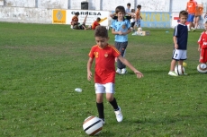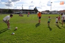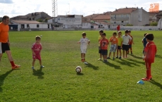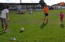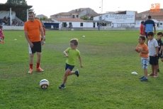 En la primera jornada de la Escuela, numerosos padres siguieron desde la grada la sesión, que para unos cuantos chavales supuso su primer contacto 'oficial' con un balón.