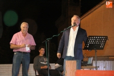 Tras las palabras del alcalde tomó la vez el pregonero de las fiestas, José Edmundo Sánchez Agudo, director de Onda Cero Ciudad Rodrigo y natural de Bañobárez, un pueblo que ?a pesar de haber recorrido media provincia? siempre lleva en su corazón y al que regresa en su moto a poco que se preste la ocasión.