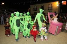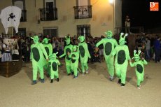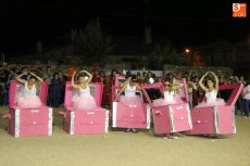 Tras finalizar el pregón se dio paso a un divertido y colorido concurso de disfraces. Piratas, marqueses, princesas, marcianos, cajas de música con bailarinas, payasos y fresones, tigresas y gladiadores, y hasta lo que parecía el coro de baile salido del Moline Rouge llenaron de fiesta la plaza de Bañobárez, escenario que será el epicentro de las fiestas.