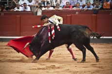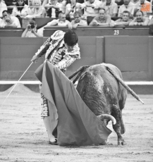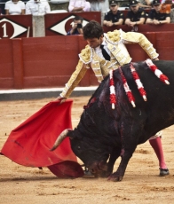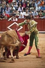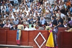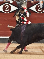 La lírica de Perera también enamoró en La Glorieta porque lo ve claro y sabe por dónde hay que atacar para emocionar a los públicos, por eso se ha convertido en la máxima figura de estos días. Impresionante en su primero, frente al que se mostró poderoso y artista a partes iguales, andándole con mucho garbo. Con eso que se llama torería en una faena grande y de verdad que nunca debió ser rubricada con manoletinas, hoy tan de moda, pero durante muchos años alejadas de las plazas después de que en la pasada década de los cincuenta un futbolista del Real Madrid, llamado Montalvo, torease un festival y basada su faena en ese pase efectista que llegó del toreo cómico ?invento de Llapisera- y popularizase Manolete. Entonces los públicos al ver su facilidad no dejaron que nadie la pusiese en práctica en las grandes ferias, únicamente se le permitió a Mondeño en provincias y a Bernardó con las de su cosecha, que eran invertidas (las bernardinas). Con la salvedad de ese pero, Perera estuvo extraordinario y cortó dos orejas a un astado que fue largamente aplaudido en el arrastre.