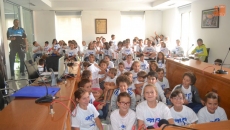 El salón de actos se quedaba pequeño para recibir a la multitud de escolares que se han inscrito en la primera Jornada de Multas Solidarias, una actividad con la que, en palabras de José Antonio Jiménez Barcala, "se pretende enseñar a los niños las normas que los españoles debemos cumplir para generar una convivencia cívica".