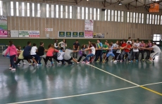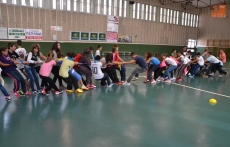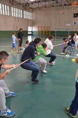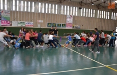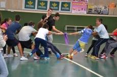 Esa segunda parte de la acogida consistió en una serie de juegos, teniendo la oportunidad los chavales de jugar al fútbol, al rugby, o a deportes mezclados como el voley-tenis. Además, en el tramo final de la mañana, probaron la sogatira. Las actividades estuvieron supervisadas por profesores del IES y por alumnos de 2º de Bachillerato.