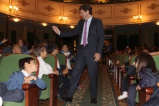 Con motivo de la Semana de la Movilidad Europea, este miércoles, en el Teatro Liceo, el grupo Katua ha representado la obra 'Mi ciudad' y, posteriormente, se ha llevado a cabo una jornada de educación vial para jóvenes, con la colaboración de Aesleme (Asociación para el Estudio de la Lesión Medular), Coca-cola, Policía Local y la DGT. El alcalde de Salamanca, Alfonso Fernández Mañueco, ha visitado a los niños que participaban en estas actividades con los que ha estado hablando sobre los medios de locomoción. Los pequeños han coincidido en que el mejor es la bicicleta.