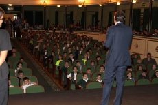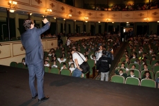 Más de 400 escolares de Educación Secundaria y Bachillerato, que están realizando sus estudios en siete centros educativos de la capital y del alfoz, se han acercado esta mañana al Teatro Liceo para participar en la actividad titulada "Te puede pasar a ti", una propuesta que forma parte de la Semana Europea de la Movilidad.