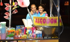 La primera gran cita de la Concentración de este año era la visita de varios de los participantes en el programa Mujeres y Hombres y Viceversa de Telecinco, en lo que se conoce como un 'bolo'. La 'entrada en acción' de esos personajes televisivos estaba prevista para la medianoche, pero sin embargo se hicieron de rogar hasta casi la 1 de la madrugada ?estuvieron cenando mientras tanto-.
