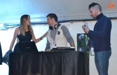 Con el comentado retraso, cruzaron la carpa, y se subieron al pequeño escenario que se ha instalado este año, donde un DJ llevaba ya un tiempo poniendo música. A partir de ese momento, todos aquellos que lo desearon pudieron hacerse fotos con los personajes de MyHyV que eran, según las referencias que ellos mismos colgaron en Twitter, La Perla, Ken, Patricia y Rubén Sánchez.