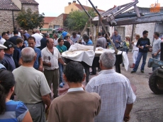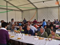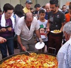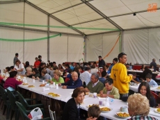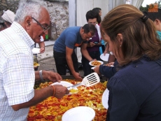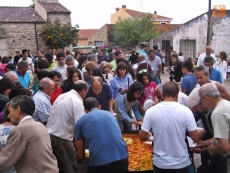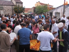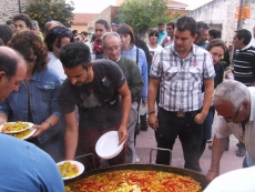 Un plato de arroz para reponer fuerzas en la recta final de las fiestas patronales y la mejor excusa para reunir a vecinos y amigos en Juzbado. Y es que este domingo la cita era, primero entre fogones, y luego en torno a la mesa. En Juzbado son los vecinos los que se encargan de preparar la tradicional paella. Desde primera hora se reúnen en los pilones para organizar todos los preparativos. A la hora prevista, mientras unos preparan las mesas y sillas en la plaza, junto al frontón, el tractor ya está preparado para subir la paellera desde los pilones. Lo siguiente, hacer cola para coger el plato de paella, sentarse y comer. Y para la espera, un vasito de sangría.
