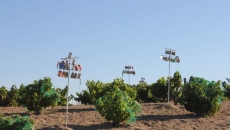 Que la mente y el ser humano juntos o por separado no pueden idear ingenios para casi cualquier cosa es algo incierto. Buena prueba de ello son los 'revolucionarios' espantapájaros instalados en los viñedos de Alaraz, tal y como presentan las fotografías de Antonio Prieto Rivera. En apariencia simples, sin grandes cálculos matemáticos, pero con un complejo objetivo que parece cumplirse al cien por cien. Varillas y latas recicladas de refresco que generan un rechazo de las aves, un simple sistema que bien llevaría a la gloria cualquier nave del misterio que se fijara en ellos...Y lo saben.