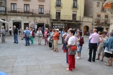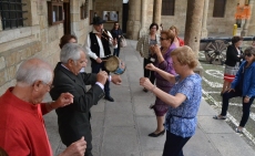 Después de unos minutos, empezaron a bajar por la Plaza, despertando la curiosidad ?especialmente por la música de la gaita y el tamboril- de los turistas que había en ese momento en el ágora mirobrigense.