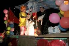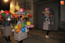 Animado por la música de charanga, el desfile comenzaba con un grupo de de chicas con los más dispares disfraces, para continuar con toda una religión de turistas en globo. 'La vida es un cuento', y 'El Circo' fueron algunas de las representaciones más llamativas por el número de personajes y extraordinario vestuario; también un metafórico grupo de cazadoras y su coto privado de caza, y no menos lo fue el legendario Super Mario Bros en la pista de kars o el tobogán de Valderrodrigo, recién salido de un parque de atracciones.