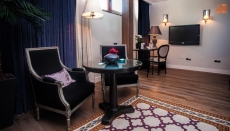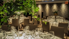 El restaurante dispone de una capacidad de hasta 150 comensales en banquetes o salas privadas para reuniones de 10 personas. Modernas y cuidadas instalaciones en un entorno del siglo XV que ofrece al cliente del hotel una atmósfera de elegancia, tranquilidad y calidad gastronómica a la que no puede renunciar durante su estancia en el hotel. El restaurante también dispone de cafetería y música de piano en directo. Un espacio dedicado al bienestar y al descanso de lujo
