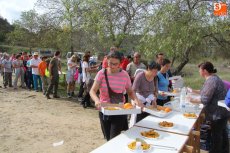 Con la llegada a los bordes del Reventón tenía lugar el avituallamiento, demasiado recorrido sin descanso, lo cual hizo mella en los caminantes, que se disponían desde aquí a partir en dirección a Zarapallas. Tras el descenso, nuevo repecho para alcanzar la 'cuerda' de los Cabriles y bordear su Teso para sorpresa de un bando de perdices que buscaron el refugio de Múncina, unas, y Baldosa, otras.