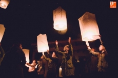 ALBA DE TORMES | A través de farolillos que soltaron desde la Isla de Garcilaso en una noche cerrada y lluviosa