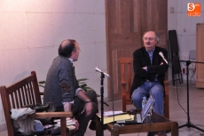 El salón de actos de la Casa de las Conchas ha acogido este martes una nueva edición de Bibliotecas de Escritores, dentro del ciclo de Encuentros con escritores, organizado por la fundación Miguel Delibes. Jesús Marchamalo ha sido el encargado de entrevistar a Antonio Colinas, protagonista de esta nueva cita, en la que ha hablado de sus libros, sus lecturas y autores favoritos.