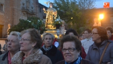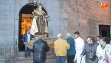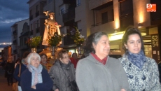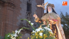 Tras ella, la imagen de la Santa salía del templo portada a hombros, para ser colocada en el trono en el que ha recorrido las calles de la ciudad en una procesión a la que se han unido numerosos vecinos.