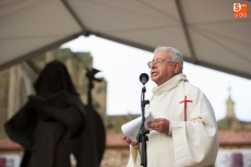 El cese de la lluvía permitió celebrar sin problemas la misa solemne de apertura del V Centenario del Nacimiento de Santa Teresa en la recién estrenada Plaza del Peregrino, situada junto a la Basilica Teresiana. Una celebración que ha sido presididad por el obispo de Salamanca, Carlos López que ha sido arropado por sacerdotes de varias congregaciones y por cerca de un millas de fieles a Santa Teresa de Jesús.