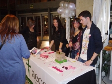 Con la llegada de la noche se tiñó también de rosa la fachada y pasarelas peatones del Centro Comercial El Tormes que permanecerán de este color hasta el próximo viernes como una forma de sumarse a la causa de AECC y su lucha contra el cáncer de mama. Durante la Shopping Night, la Asociación Española contra el Cáncer de Salamanca regaló lazos rosas a los clientes y contó también con una mesa informativa en la que se daba cuenta de los actos organizados con motivo del Día Internacional contra el Cáncer de Mama.