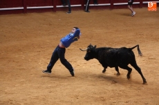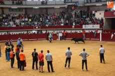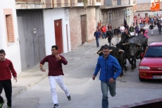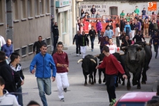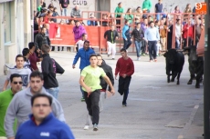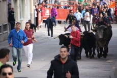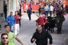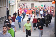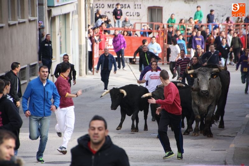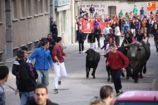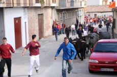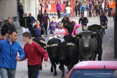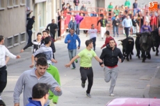 Bonitas carreras las que se han visto hoy en el último encierro con novillos de Ángel Sánchez que han recorrido las calles de Alba de Tormes agrupados en manada. Brillantes las carreras que han podido verse en la calle la Beltrana, la más ancha del recorrido.