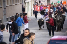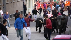 Ningún problema con los astados pero sí en el acceso a la plaza de toros, donde un corredor ha sido arrollado por otro sufriendo un fuerte golpe con la valla de protección. El mozo fue atendido por los servicios médicos en la misma plaza donde se le aplicaron cinco puntos de sutura en frente y nariz.