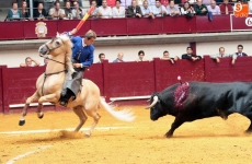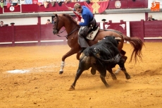 Muy capaz se mostró Óscar Mota desde los inicios ante el primer ejmplar del Puerto de San Lorenzo. Lo dejó llegar para fomentarle el celo con un templado galope que despertó los tendidos. Tiró de variedad el joven y concluyó con tres banderillas cortas. Pinchó y tuvo que conformarse con una ovación. Le faltó fuerza también al cuarto ejemplar de El Puerto pero Mota supo medir los tiempos a lomos de sus caballos y se mostró muy capaz, queriendo siempre. Variedad en su toreo ante la feble condición de este cuarto, disposición y valor premiado con dos orejas tras un buen rejonazo.