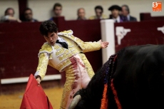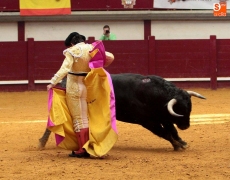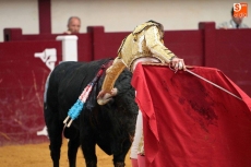 Temple en su capote mostró Juan del Álamo con un sensacional toreo a la verónica al segundo, un temple que estuvo muy presente en toda la faena que supo imponerse a su oponente en el que pecó la falta de fuerza aunque con mucha condición. Se impuso el salmantino dando los tiempos que requería y firmó tandas de gusto por el pitón dercho. Bien también al natural con una serie larga y muy templada. Se gustó y acabó entre pitones una faena que se deslució por el fallo con los aceros. A la verónica y de rodillas recibió al cierraplaza, un toro con el que salió a por todas. No se lo puso fácil a Del Álamo, pero la derecha del salmantino ganó la batalla con un toreo inteligente, de tiempos precisos y entrega real. Larga tanda también al natural. Pinchó a la primera y fuerte susto al entrar a matar en el segundo intento. No se arrugó y mostró más valor si cabe lo que le dió las dos orejas con una plaza puesta en pie