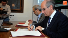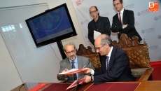 El presidente de la Diputación de Salamanca, Javier Iglesias, y el Rector de la Universidad de Salamanca, Daniel Hernández Ruipérez, han firmado este miércoles un convenio de colaboración entre ambas instituciones en materia de voluntariado cultural con el objetivo de que la institución académica llega a diferentes puntos de la provincia de Salamanca que hasta ahora no había llegado.